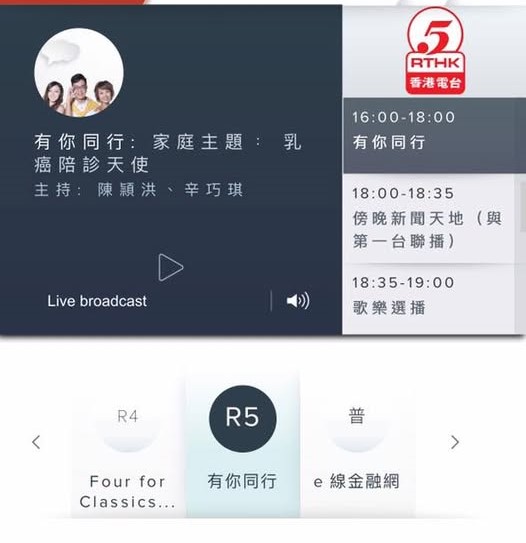 全球华人乳癌组织联盟主席王天凤女士有幸到RTHK radio 5 「有你同行」节目接受访问,分享快乐种子之余,还向听众推介「粉红天使」乳癌化疗陪诊服务,希望这个免费服务让更多有需要人士受惠。如想重温访问,可浏览:http://www.rthk.hk/……/standbyme_2011/episode/511195