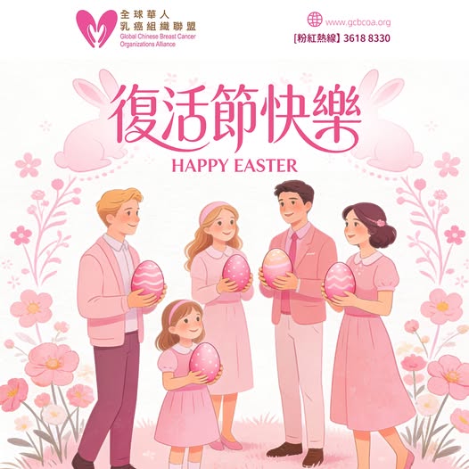 復活節的鐘聲,帶來了春天的氣息。這是一個慶祝生命與希望的節日。就像在一個陽光柔和的午後,我們與摯愛的家人聚在一起,大家穿上了代表希望的粉紅新衣,手裡緊握著象徵新生命的彩蛋。那份溫暖與安寧,正是我們在抗癌路上最堅強的護盾。