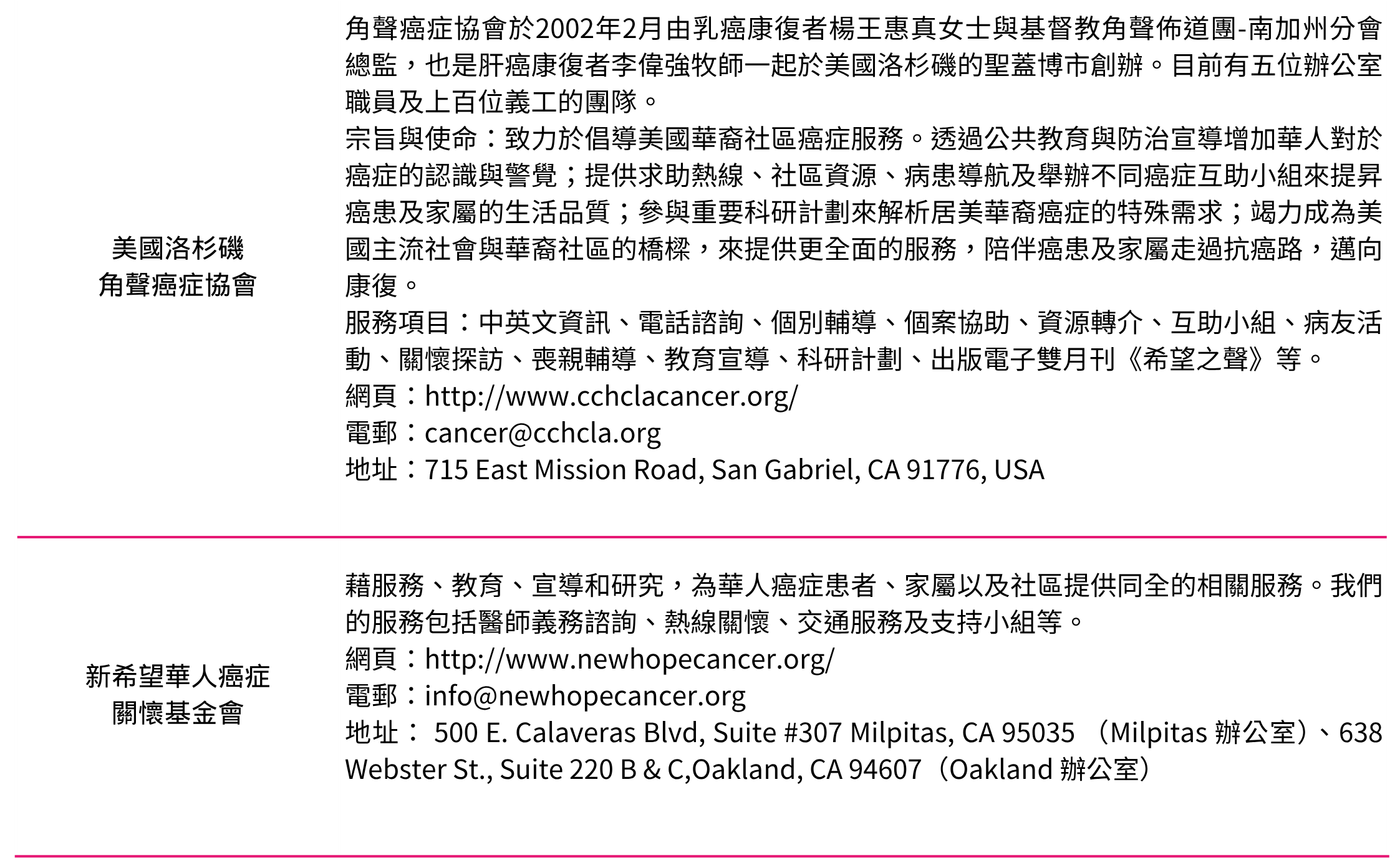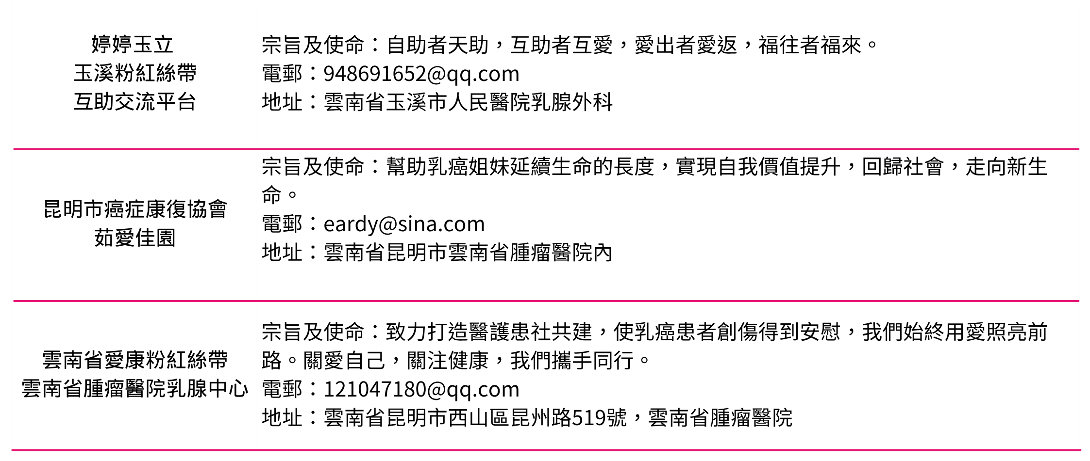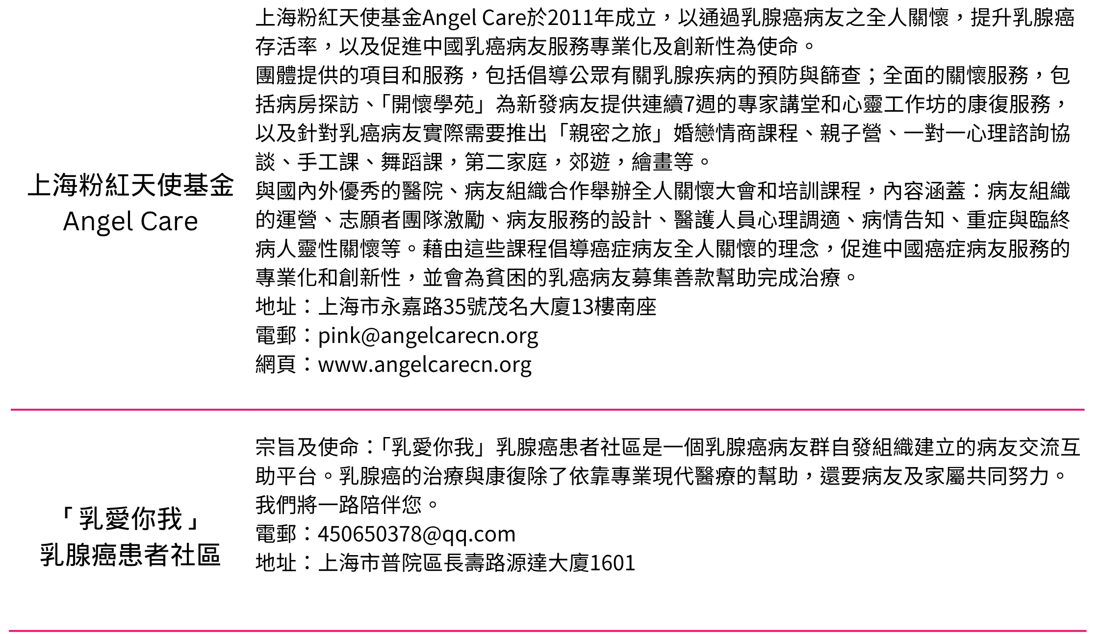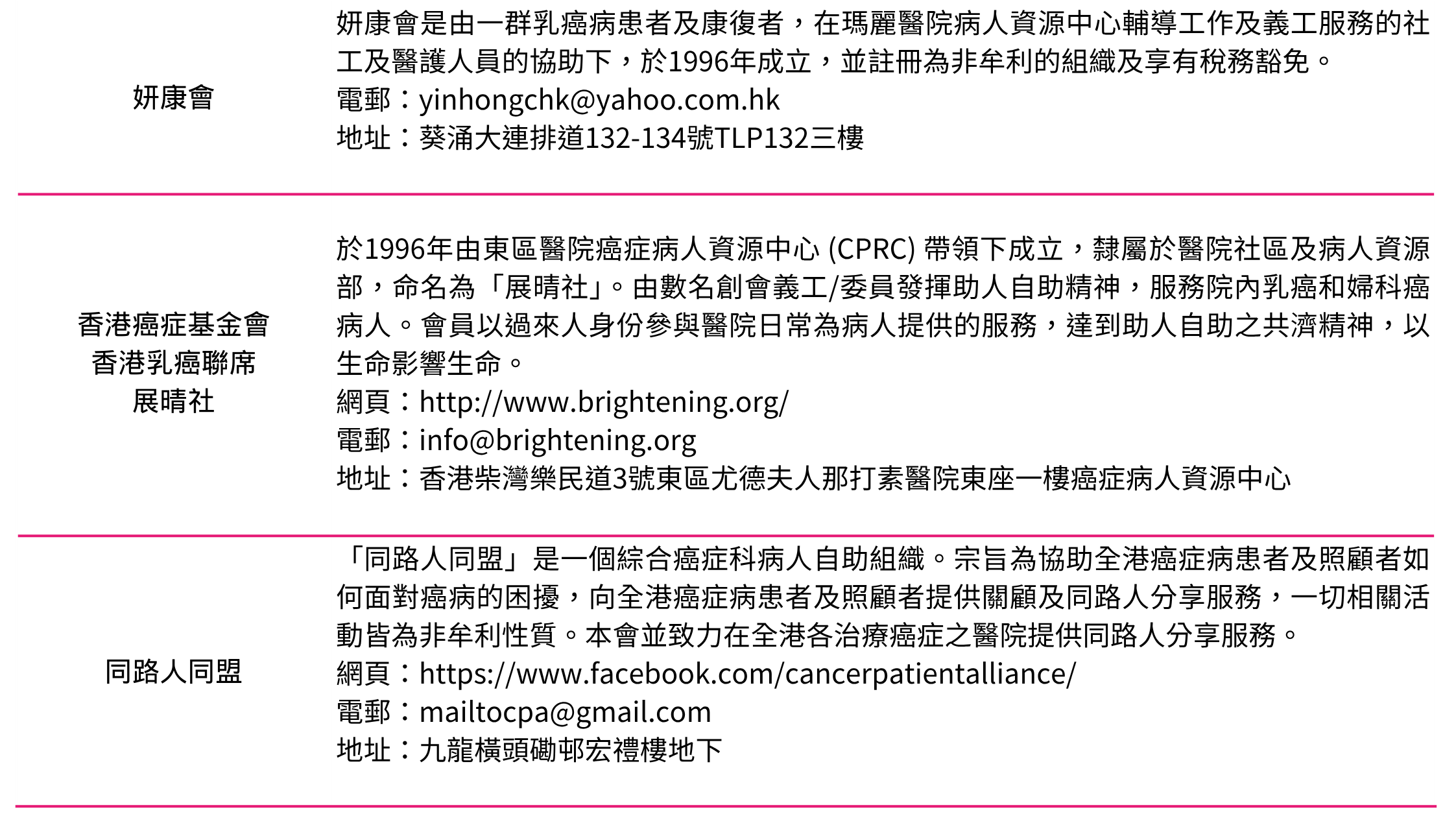 所有病友團體未能盡錄,如有需要,請聯絡我們